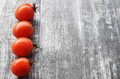Zdjęcie "Świeże, czerwone pomidory na stary tło. Widok z góry. Bezpłatny egzemplarz przestrzeni." może być wykorzystywane do celów osobistych i komercyjnych zgodnie z warunkami zakupionej licencji Royalty-free. Obraz jest dostępny do pobrania w jakości wysokiej rozdzielczości do 5760x3840.