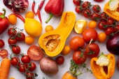 kolorowe warzywa ułożone na białym tle. Koncepcja żywienia wegańskiego