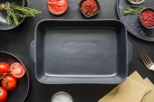 stos świeżych kolorowych warzyw z pustą metalową tacą na betonowej szarym tle, koncepcja zdrowych składników żywności