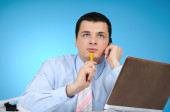biznesmen z laptopem