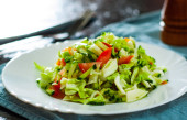 sałatką ze świeżych warzyw z pomidorkami i kapusta