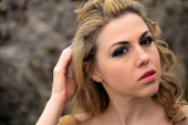 piękna kobieta z brązowego hair.pportrait tryb moda