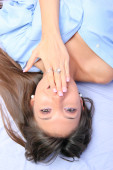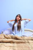 młoda brunetka na łóżku