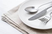 pusta płyta łyżka widelec i nóż