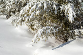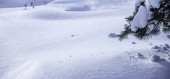 śnieg pokryte szczyty górskie i szlaki turystyczne na Słowacji tatrzańskich. zimowy widok na piesze wędrówki