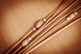 ciemne drewniane pałeczki do jedzenia na mat bambusowych