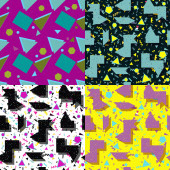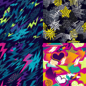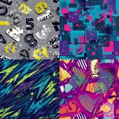 Zestaw streszczenie wektor wzór dla dziewcząt, chłopców, ubrania. Twórczy tle z kropek, figur geometrycznych, śmieszne Tapety na tkaniny i tkaniny. Moda styl. Jasne kolorowe