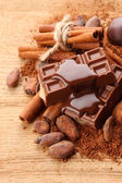 Skład czekolady słodycze, kakao i przyprawy na drewniane tła