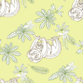 Akwarela cute leniwce wiszące na drzewach bezszwowe wzór, ręcznie rysowane na zielonym tle