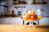 czerwony świeży dojrzały jabłko na biały kuchnia tabela