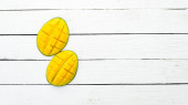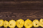 Suchy makaron. Widok z góry. Na drewnianym tle. Bezpłatna przestrzeń kopiowania.