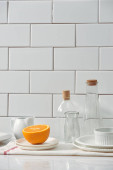 Zdjęcie "Proste rustykalne naczynia kuchenne białe ściany drewniane: szorstki ceramiczny garnek z drewnianych gotowania przybory zestawu, stosy ceramiczne miski, dzbanek i Tace drewniane." może być wykorzystywane do celów osobistych i komercyjnych zgodnie z warunkami zakupionej licencji Royalty-free. Obraz jest dostępny do pobrania w jakości wysokiej rozdzielczości do 5760x3840.