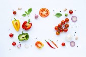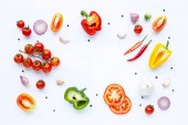 Różne świeże warzywa i zioła na białym tle. Zdrowe