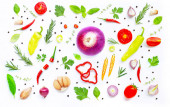 Różne świeże warzywa i zioła na białym tle. Zdrowe
