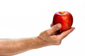 Zdjęcie "świeże czerwone jabłko w pięknych, ręcznie na białym tle." może być wykorzystywane do celów osobistych i komercyjnych zgodnie z warunkami zakupionej licencji Royalty-free. Obraz jest dostępny do pobrania w jakości wysokiej rozdzielczości do 5760x3840.