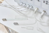 Zbliżenie pędzli kosmetycznych do obierania i oczyszczania twarzy.