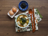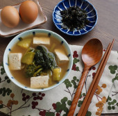 Koreański żywności soi i szpinaku wklej gulasz, doenjangguk, zupa miso