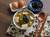 Koreański żywności soi i szpinaku wklej gulasz, doenjangguk, zupa miso