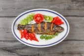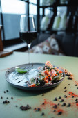 grillowane gruzińskie mięso Kebab z winem na drewnianym tle