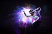Młodzi tancerze nowoczesnego baletu w skoku. Media mieszane