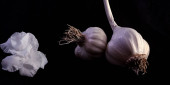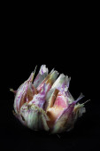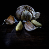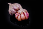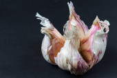 cebulki czosnku na ciemnym tle, zbliżenie