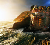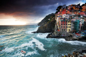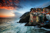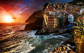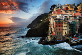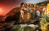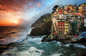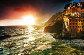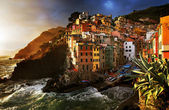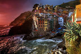 nocy wchodzących w miejscowości riomaggiore, cinque terre, Włochy