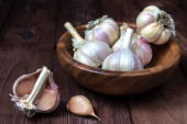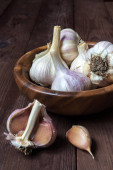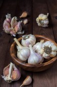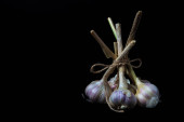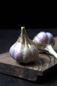 cebulki czosnku na ciemnym tle, zbliżenie