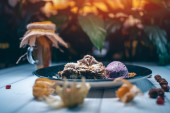 Kobieta sprawia, że kosmetyki ręcznie robione na drewnianym stole;
