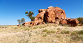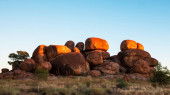Devils Marbles-magiczne czerwone głazy w czerwonym centrum w późnych godzinach popołudniowych, Australia