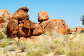 Devils Marbles-magiczne czerwone głazy w czerwonym centrum w późnych godzinach popołudniowych, Australia
