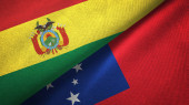 Wenezuela i Boliwia dwie flagi tkanina tekstylna, tekstura tkaniny