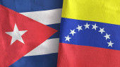 Wenezuela i Kuba dwie flagi tkanina tekstylna, tekstura tkaniny