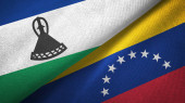 Wenezuela i Lesotho dwie flagi tkanina tekstylna, tekstura tkaniny