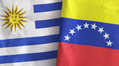 Wenezuela i Urugwaj dwie flagi tkanina tekstylna, tekstura tkaniny