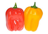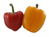 czerwona i żółta słodka papryka dzwon na białym tle
