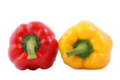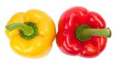 widok z góry, czerwona i żółta słodka papryka dzwon na białym tle biały ba