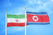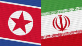 Korea Północna i Iran dwie flagi tkanina tekstylna, tekstura tkaniny