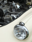 Hebden Bridge, West Yorkshire, Anglia-Sierpień 5 2018: przednie zbliżenie czerwonego brytyjskiego samochodu sportowego MGB pokazującego reflektor i chromowany zderzak na dorocznym Hebden Bridge Vintage weekendowy pokaz pojazdów