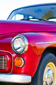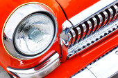 Zdjęcie "Hebden Bridge, West Yorkshire, Anglia-Sierpień 5 2018: przednie zbliżenie czerwonego brytyjskiego samochodu sportowego MGB pokazującego reflektor i chromowany zderzak na dorocznym Hebden Bridge Vintage weekendowy pokaz pojazdów" może być wykorzystywane do celów osobistych i komercyjnych zgodnie z warunkami zakupionej licencji Royalty-free. Obraz jest dostępny do pobrania w jakości wysokiej rozdzielczości do 5760x3840.
