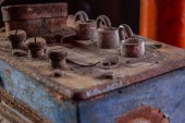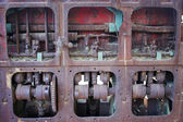 Zbliżenie starych, dużych rdzewnych silników spalinowych z cylindrami i rur
