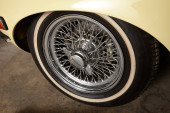 Hebden Bridge, West Yorkshire, Anglia-Sierpień 5 2018: widok z boku koła rocznika czerwony C3 korvette Stingray samochód sportowy na wystawie w rocznych Hebden Bridge Vintage weekend publicznego show pojazdu