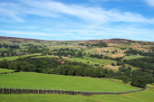 Zdjęcie "malownicze West Yorkshire Pennine krajobraz kraju z pastwiskowa owiec w kamiennych ścianach pól wzgórza ze starym gospodarstwie i wiejski pas w jasnym letnim słońcu" może być wykorzystywane do celów osobistych i komercyjnych zgodnie z warunkami zakupionej licencji Royalty-free. Obraz jest dostępny do pobrania w jakości wysokiej rozdzielczości do 5760x3840.