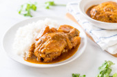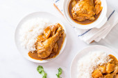 Zdjęcie "Wklej Massaman Curry kurczak z ryżem" może być wykorzystywane do celów osobistych i komercyjnych zgodnie z warunkami zakupionej licencji Royalty-free. Obraz jest dostępny do pobrania w jakości wysokiej rozdzielczości do 5760x3840.