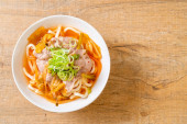 Udon ramen makaron z wieprzowiną i kimchi
