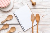 pusty Notatnik dla notatki tekstowe na powierzchni drewnianych z kopii sapce