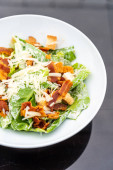 Zdjęcie "Sałatka cesarska na białym talerzu" może być wykorzystywane do celów osobistych i komercyjnych zgodnie z warunkami zakupionej licencji Royalty-free. Obraz jest dostępny do pobrania w jakości wysokiej rozdzielczości do 5760x3840.