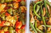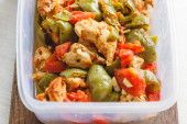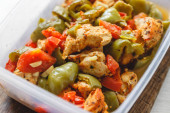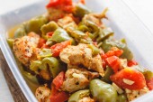 Gulasz z kurczaka i różne warzywa-papryka, pomidor, cukinia w