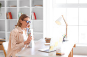 Zdjęcie "Kobieta rozmawia przez telefon w biurze" może być wykorzystywane do celów osobistych i komercyjnych zgodnie z warunkami zakupionej licencji Royalty-free. Obraz jest dostępny do pobrania w jakości wysokiej rozdzielczości do 5760x3840.
