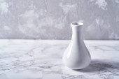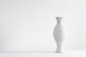 Biały wazon odizolowany na szarym tle ściany, przestrzeń do kopiowania. Wystrój domu