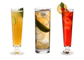 Kieliszki tradycyjnych koktajli alkoholowych na białym tle